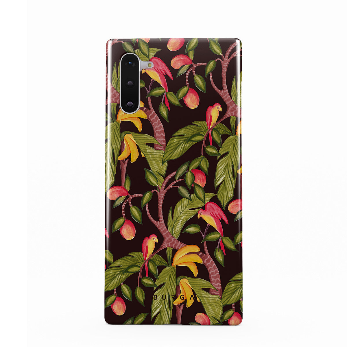 A lush botanical fantasy where ripe mangoes hang like forbidden fruit. Deep greens and juicy oranges pull you into a tropical escape. If this Samsung Galaxy Note 10 phone case design had a voice, it would purr.
