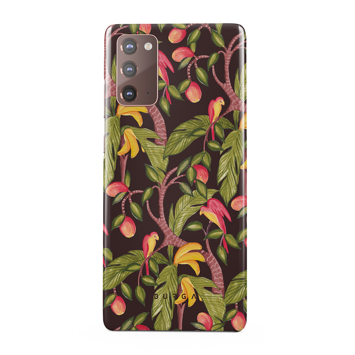 A lush botanical fantasy where ripe mangoes hang like forbidden fruit. Deep greens and juicy oranges pull you into a tropical escape. If this Samsung Galaxy Note 20 4G / 5G phone case design had a voice, it would purr.