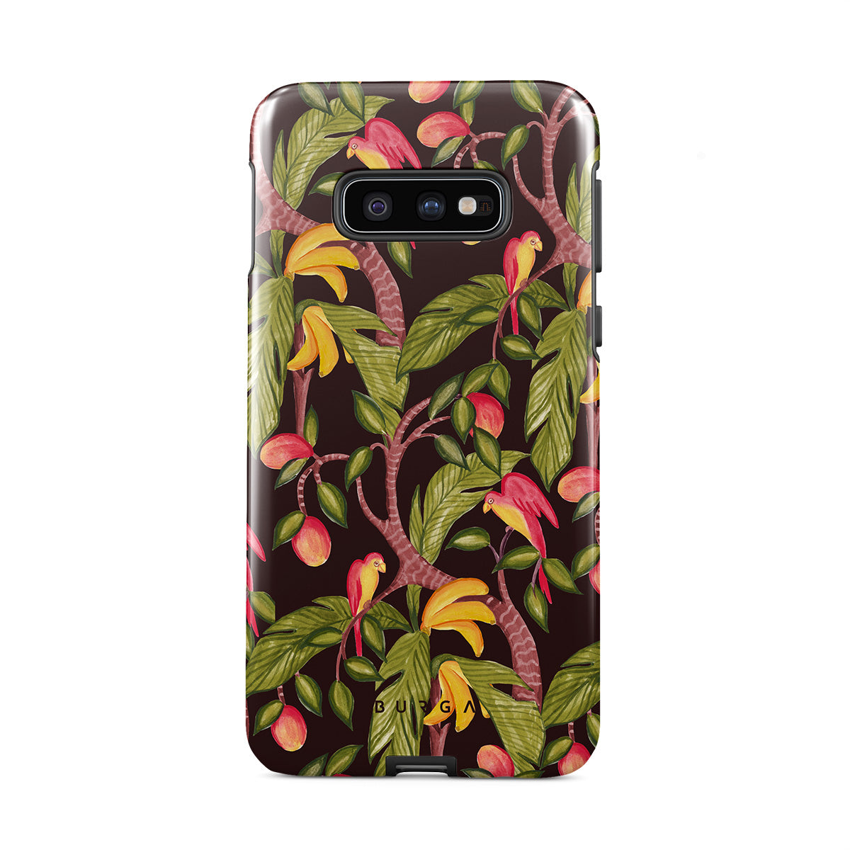 A lush botanical fantasy where ripe mangoes hang like forbidden fruit. Deep greens and juicy oranges pull you into a tropical escape. If this Samsung Galaxy S10E phone case design had a voice, it would purr.