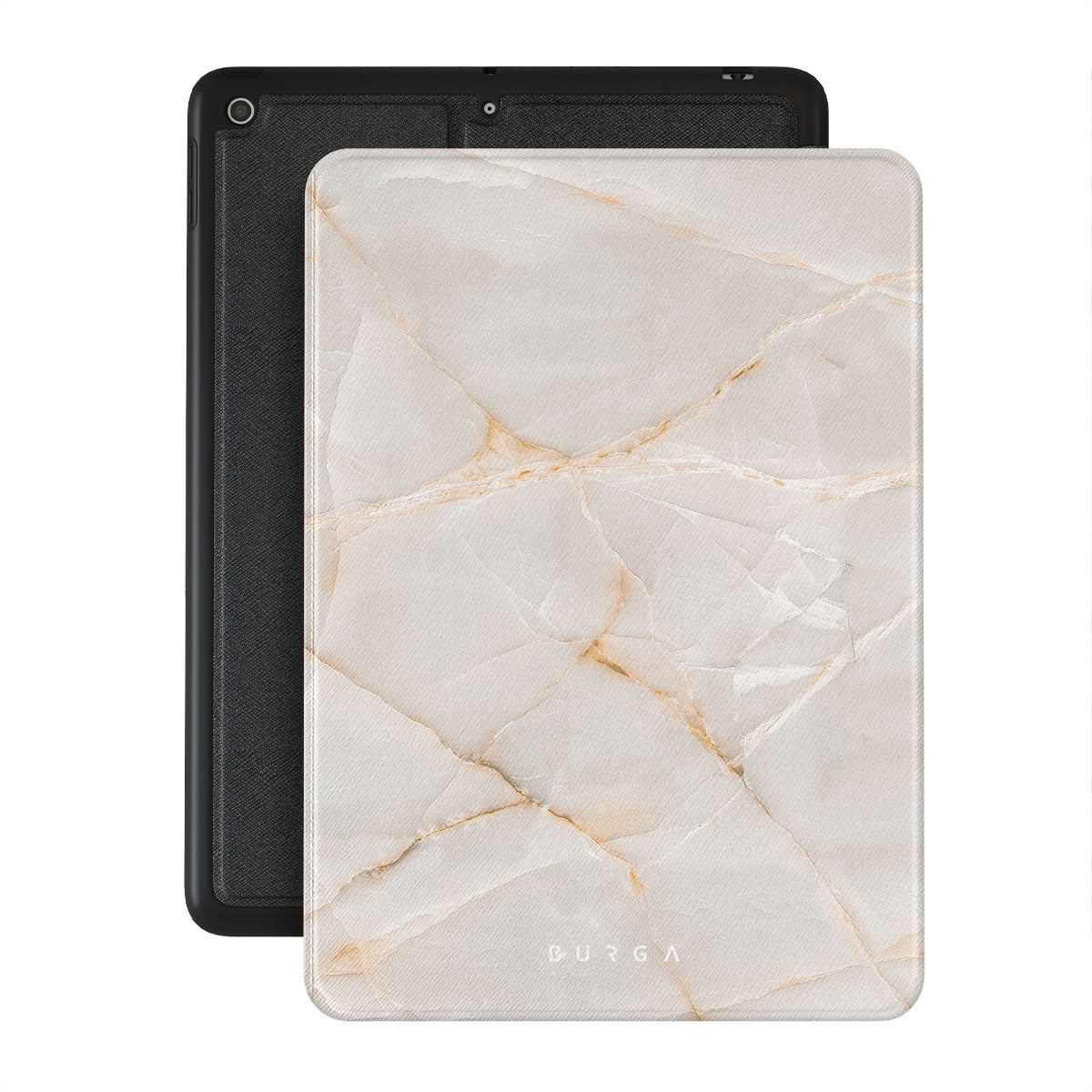 The Vanilla Sand Marble iPad 10.2 (9th/8th/7th Gen) folio case cover features a marble design with creamy canvas showcasing beautiful golden hues. The soft-toned case will add a touch of luxury to the device while protecting it from dangerous falls.