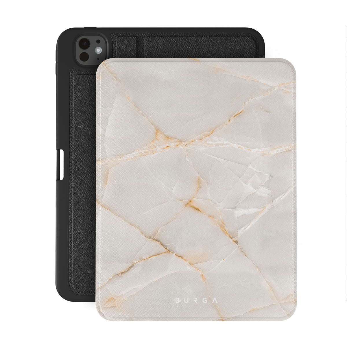 The Vanilla Sand Marble iPad Pro 11 (8th/7th Gen) folio case cover features a marble design with creamy canvas showcasing beautiful golden hues. The soft-toned case will add a touch of luxury to the device while protecting it from dangerous falls.