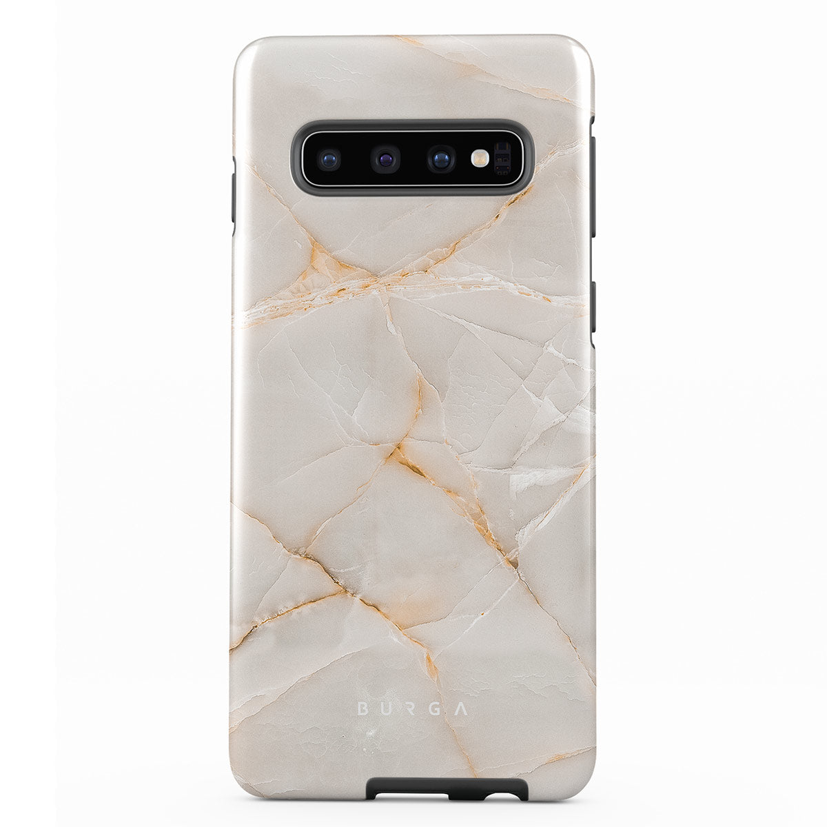 The Vanilla Sand Marble Samsung Galaxy S10 phone case cover features a marble design with creamy canvas showcasing beautiful golden hues. The soft-toned case will add a touch of luxury to the device while protecting it from dangerous falls.