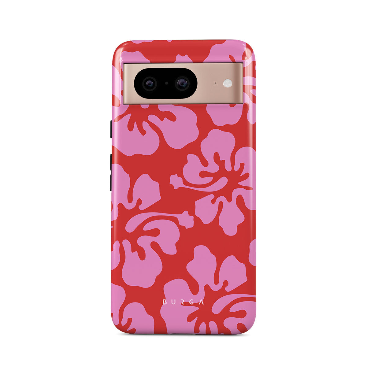 Dive into a sea of floral fantasy with Me Gustas Tu. Featuring oversized coral-toned blooms against a fiery backdrop, this Google Pixel 8 phone case design captures the wild heart of tropical flowers—perfect for those who want to carry a touch of exotic flair.