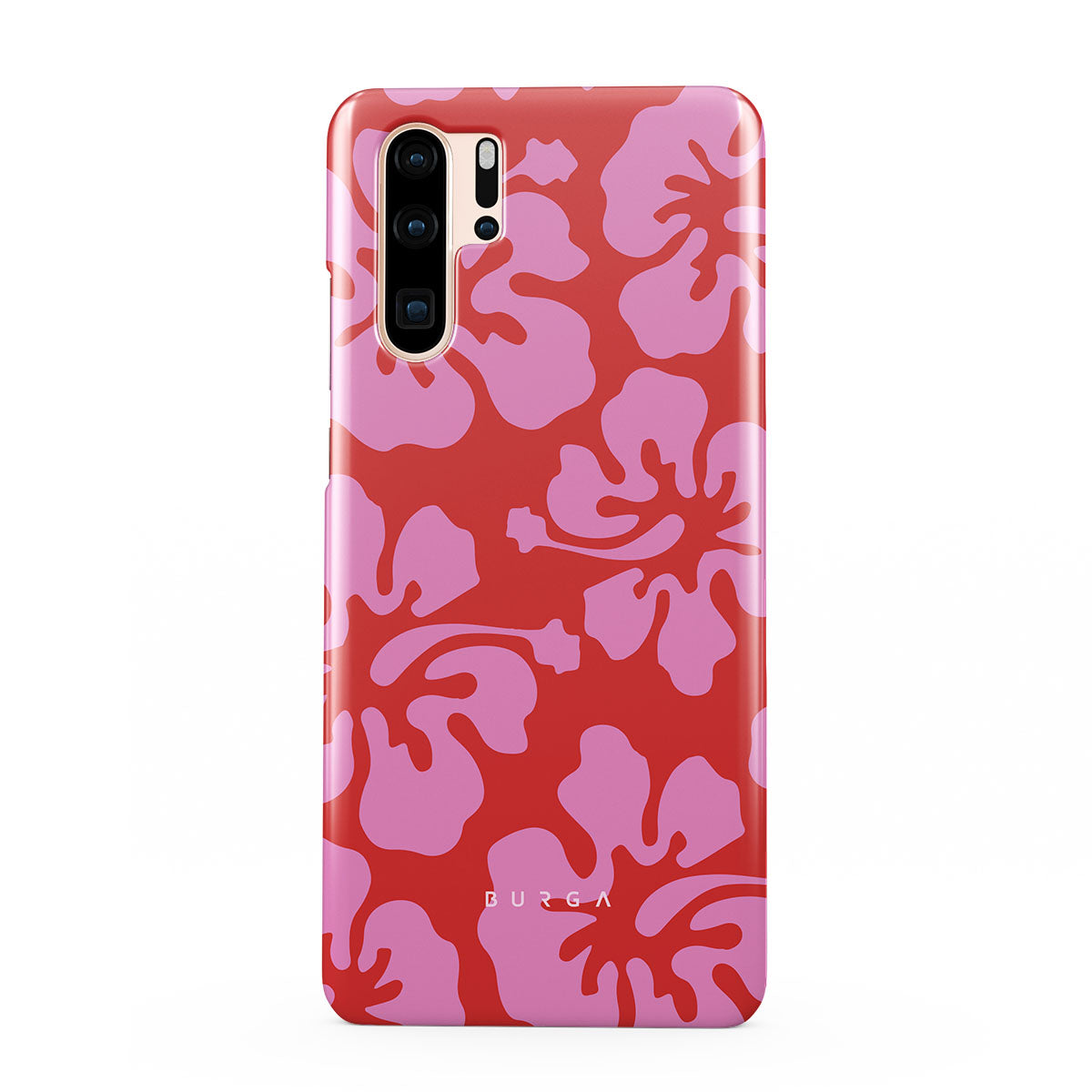 Dive into a sea of floral fantasy with Me Gustas Tu. Featuring oversized coral-toned blooms against a fiery backdrop, this Huawei P30 Pro phone case design captures the wild heart of tropical flowers—perfect for those who want to carry a touch of exotic flair.