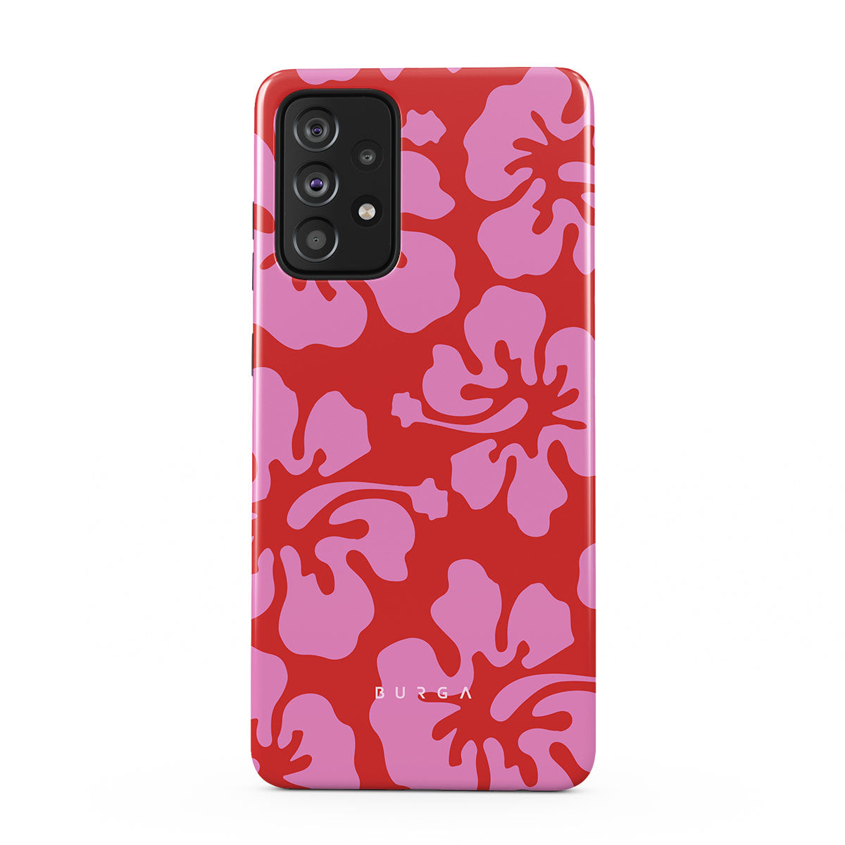 Dive into a sea of floral fantasy with Me Gustas Tu. Featuring oversized coral-toned blooms against a fiery backdrop, this Samsung Galaxy A52 / A52S 4G / 5G phone case design captures the wild heart of tropical flowers—perfect for those who want to carry a touch of exotic flair.