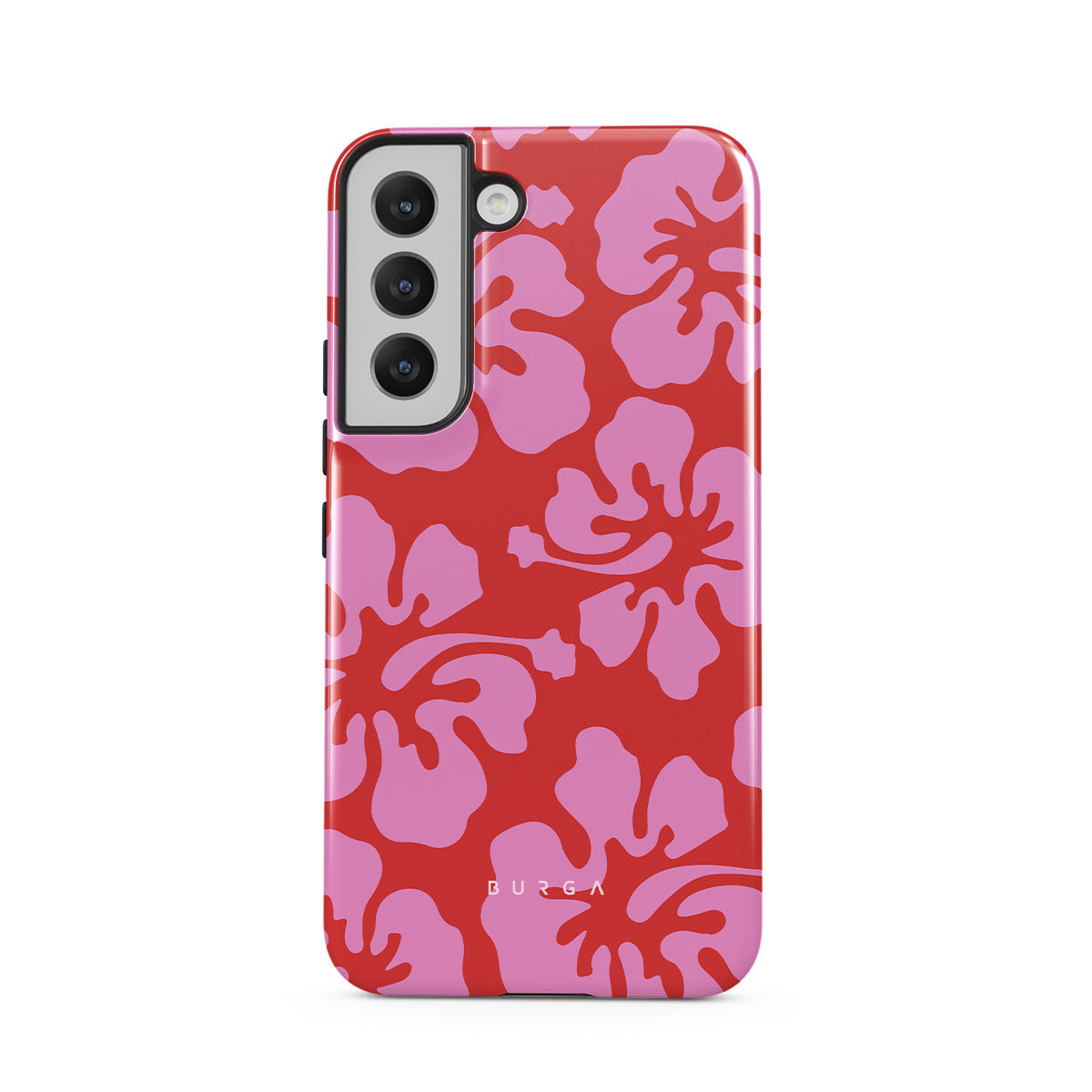 Dive into a sea of floral fantasy with Me Gustas Tu. Featuring oversized coral-toned blooms against a fiery backdrop, this Samsung Galaxy S22 Plus phone case design captures the wild heart of tropical flowers—perfect for those who want to carry a touch of exotic flair.