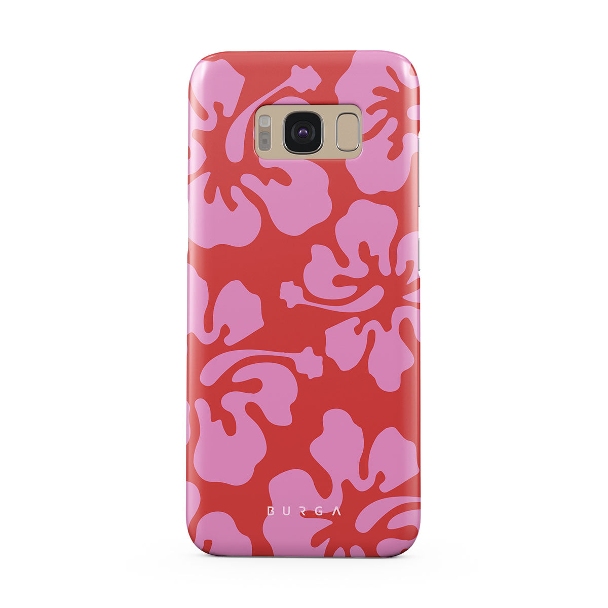 Dive into a sea of floral fantasy with Me Gustas Tu. Featuring oversized coral-toned blooms against a fiery backdrop, this Samsung Galaxy S8 phone case design captures the wild heart of tropical flowers—perfect for those who want to carry a touch of exotic flair.