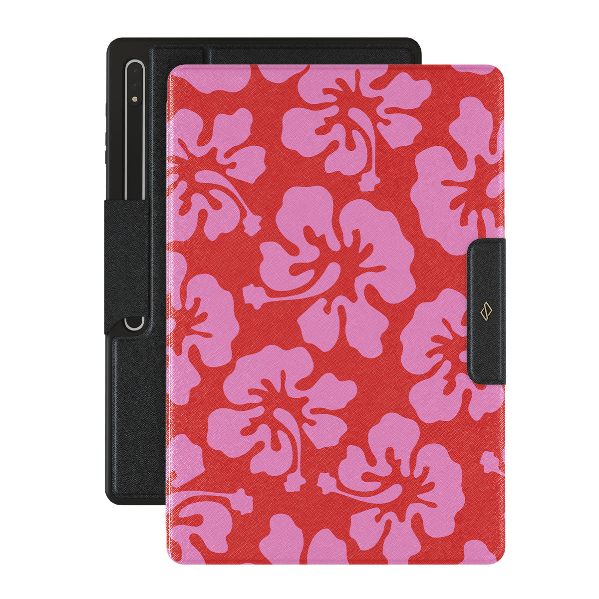 Dive into a sea of floral fantasy with Me Gustas Tu. Featuring oversized coral-toned blooms against a fiery backdrop, this Samsung Galaxy Tab S8 Ultra folio case design captures the wild heart of tropical flowers—perfect for those who want to carry a touch of exotic flair.