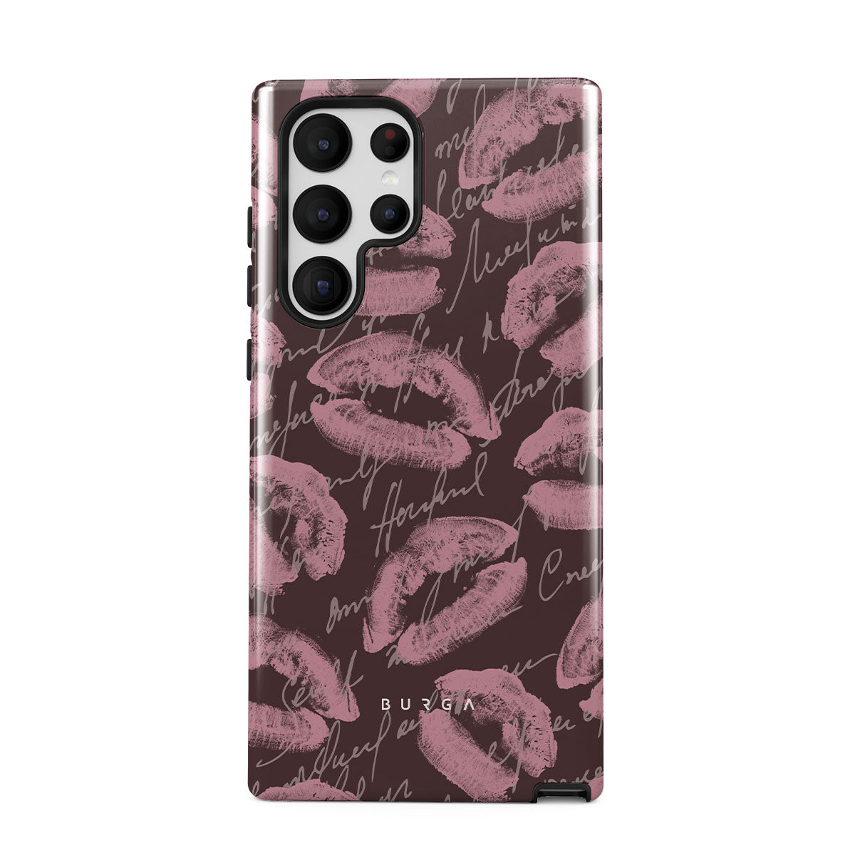 Soaked in the drama of dark pinks and adorned with the whispers of love, this design is intense, passionate, and cheeky. The Melodrama Samsung Galaxy S22 Ultra phone case is for the modern-day muse who isn't afraid of wearing their heart on their sleeve.