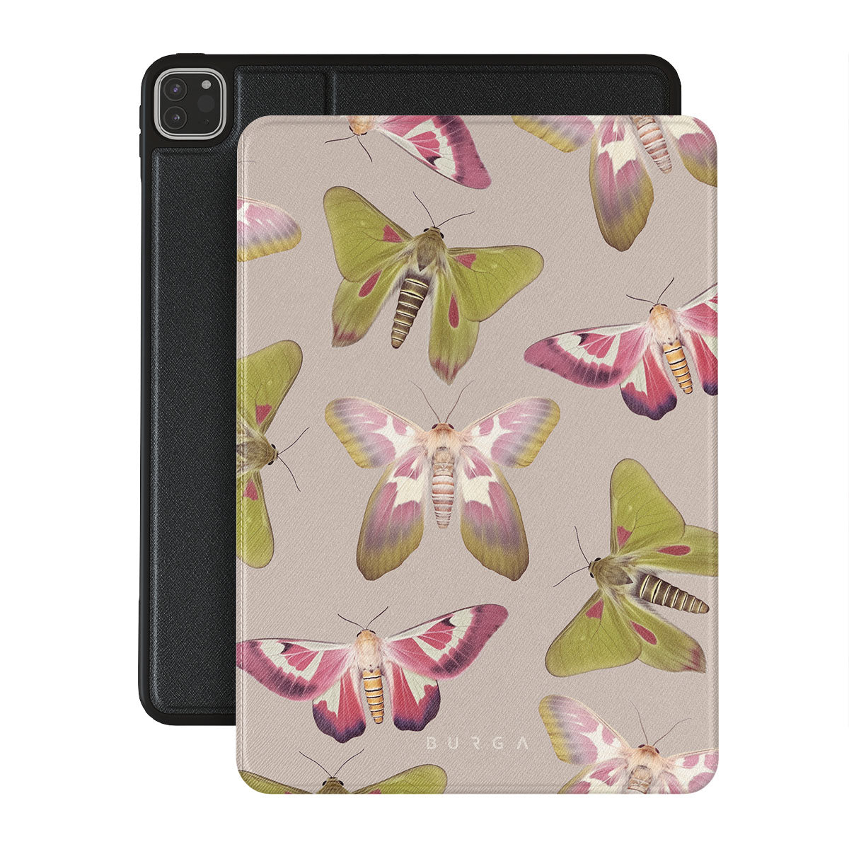 A tapestry of muted-toned moths — their wing patterns echoing tales of transformation and resilience found in nature's delicate beings. These moths, wings wide, serve as silent mentors, teaching us that every phase of life and change holds its own magic and mystery. Discover our Metamorphosis iPad Pro 12.9 (6th/5th Gen) folio casedesign.