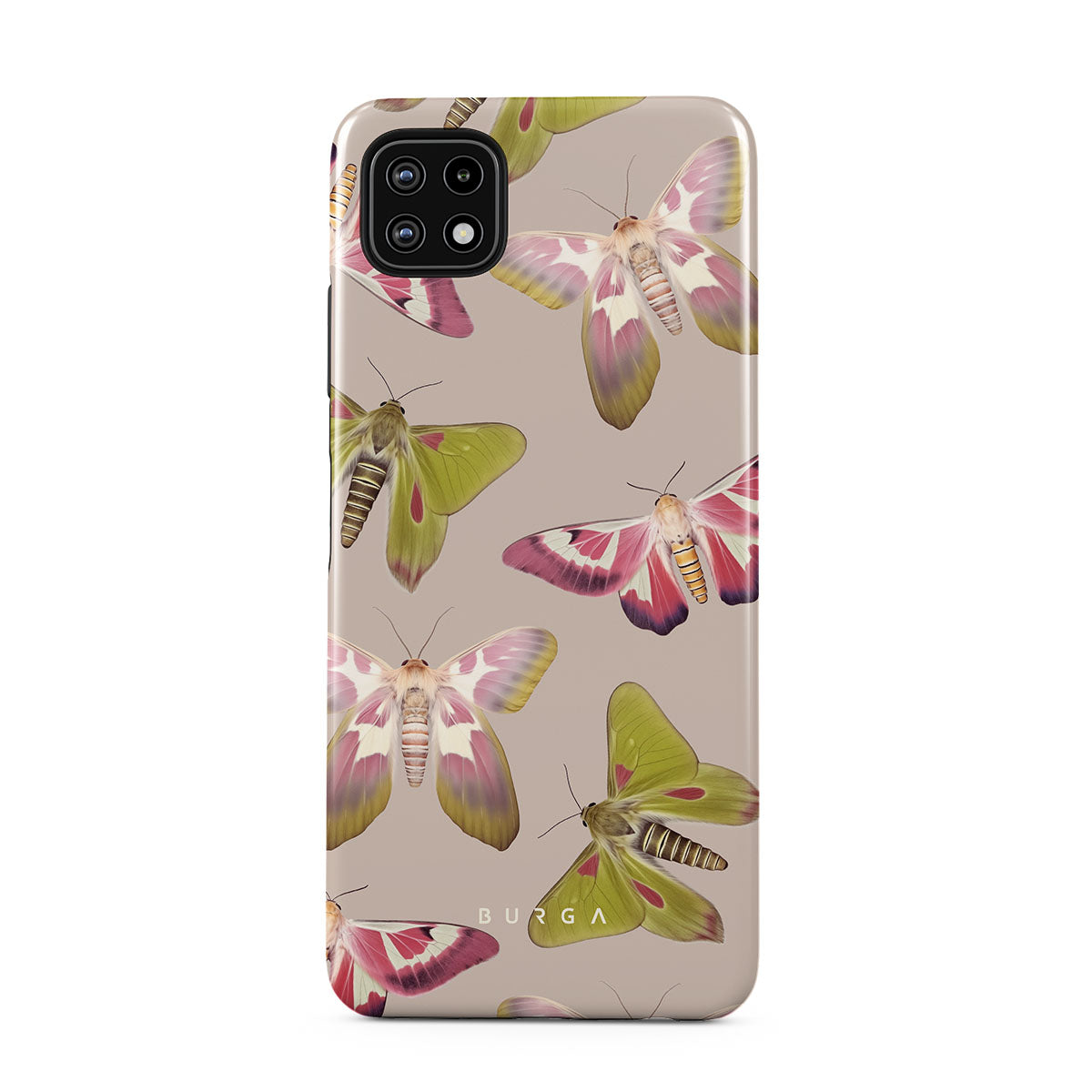 A tapestry of muted-toned moths — their wing patterns echoing tales of transformation and resilience found in nature's delicate beings. These moths, wings wide, serve as silent mentors, teaching us that every phase of life and change holds its own magic and mystery. Discover our Metamorphosis Samsung Galaxy A22 5G phone casedesign.