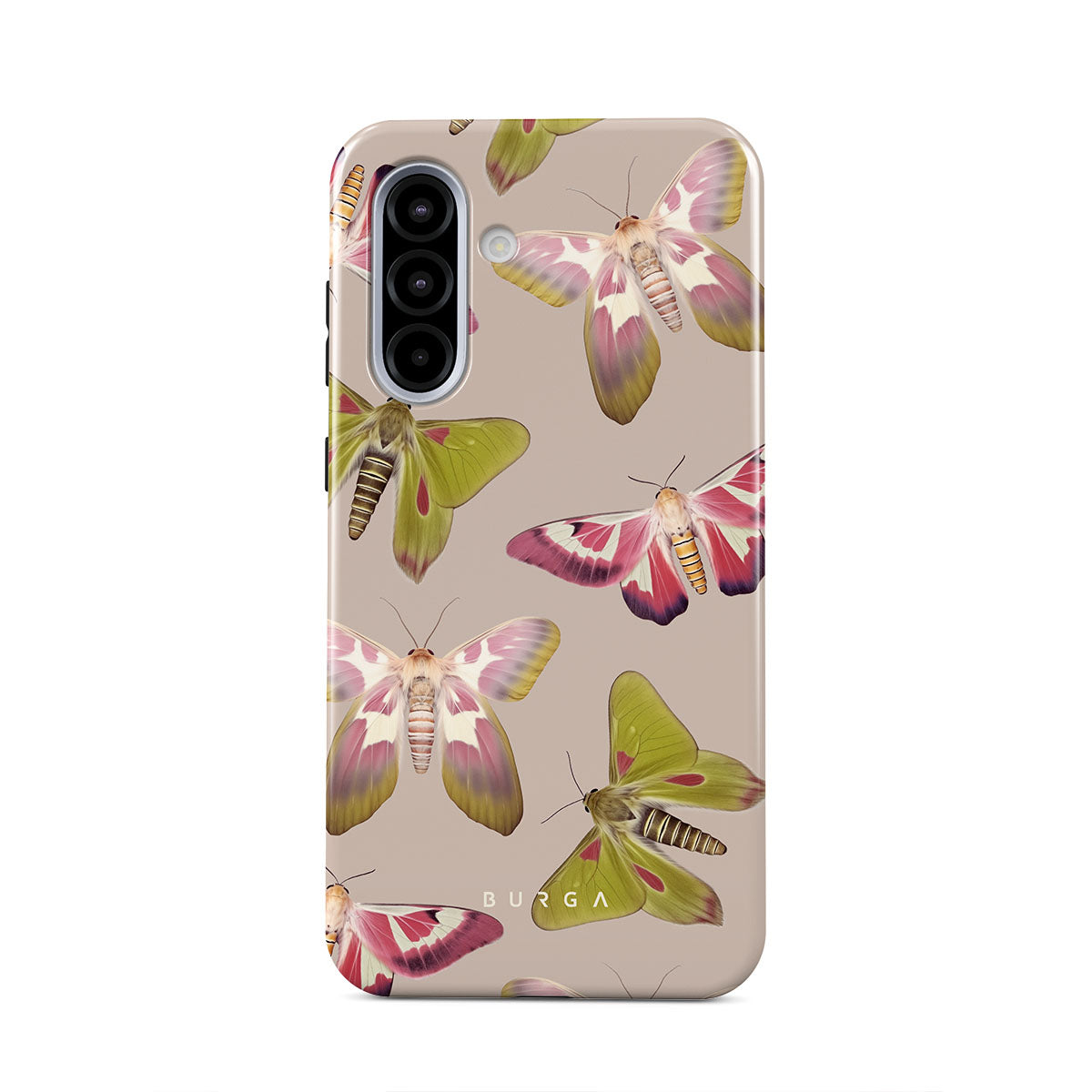 A tapestry of muted-toned moths — their wing patterns echoing tales of transformation and resilience found in nature's delicate beings. These moths, wings wide, serve as silent mentors, teaching us that every phase of life and change holds its own magic and mystery. Discover our Metamorphosis Samsung Galaxy A36 5G phone casedesign.
