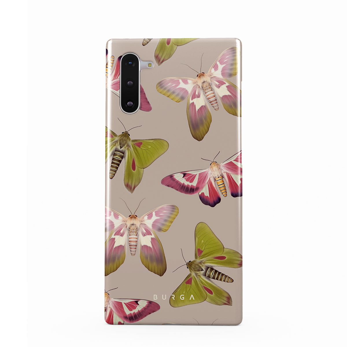 A tapestry of muted-toned moths — their wing patterns echoing tales of transformation and resilience found in nature's delicate beings. These moths, wings wide, serve as silent mentors, teaching us that every phase of life and change holds its own magic and mystery. Discover our Metamorphosis Samsung Galaxy Note 10 phone casedesign.