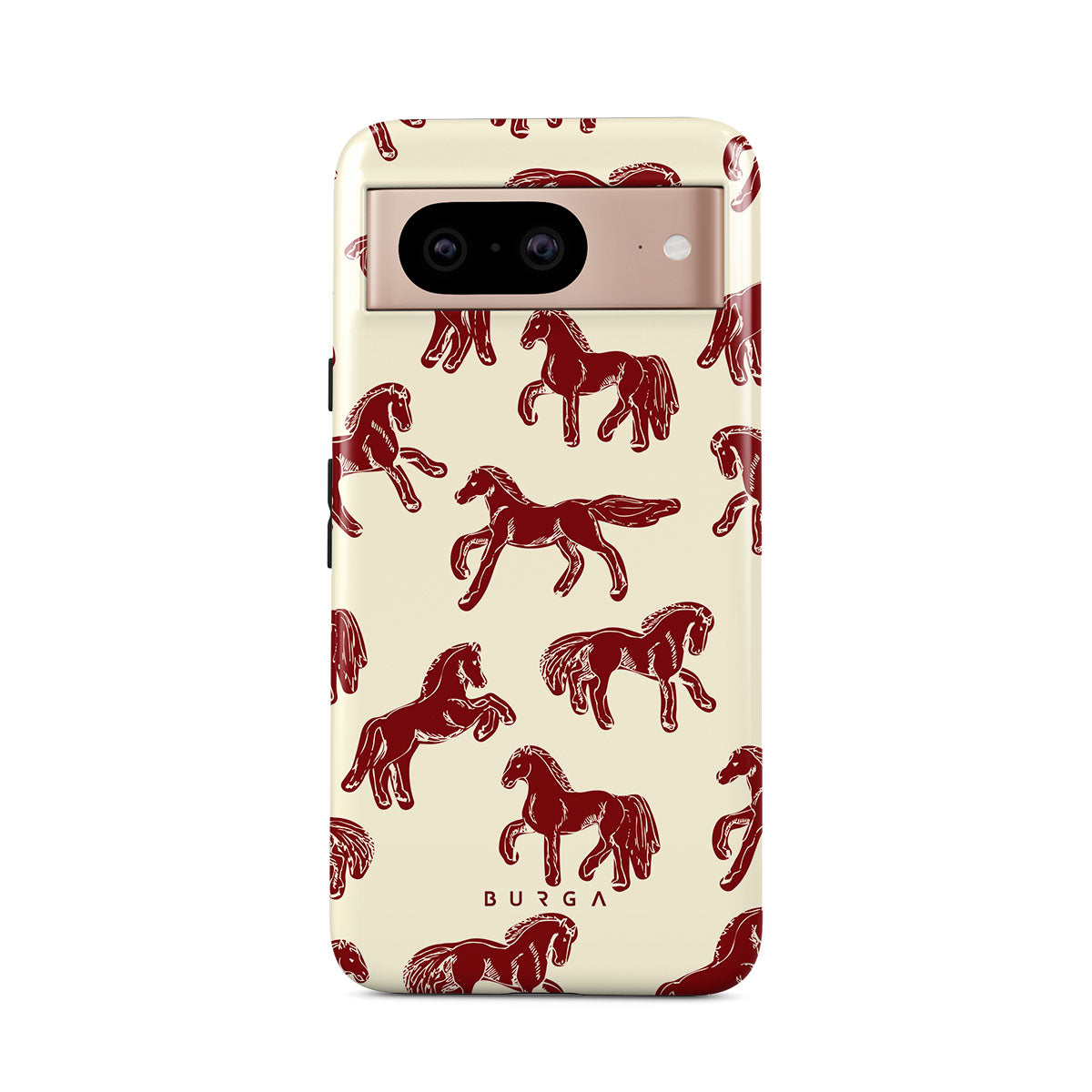 It's time to unleash your wild side with the Mustang design. Bold red horses gallop across a nude background, capturing the spirit of untamed adventure. This Google Pixel 8 phone case is perfect for the free-spirited souls ready to ride into the unknown.