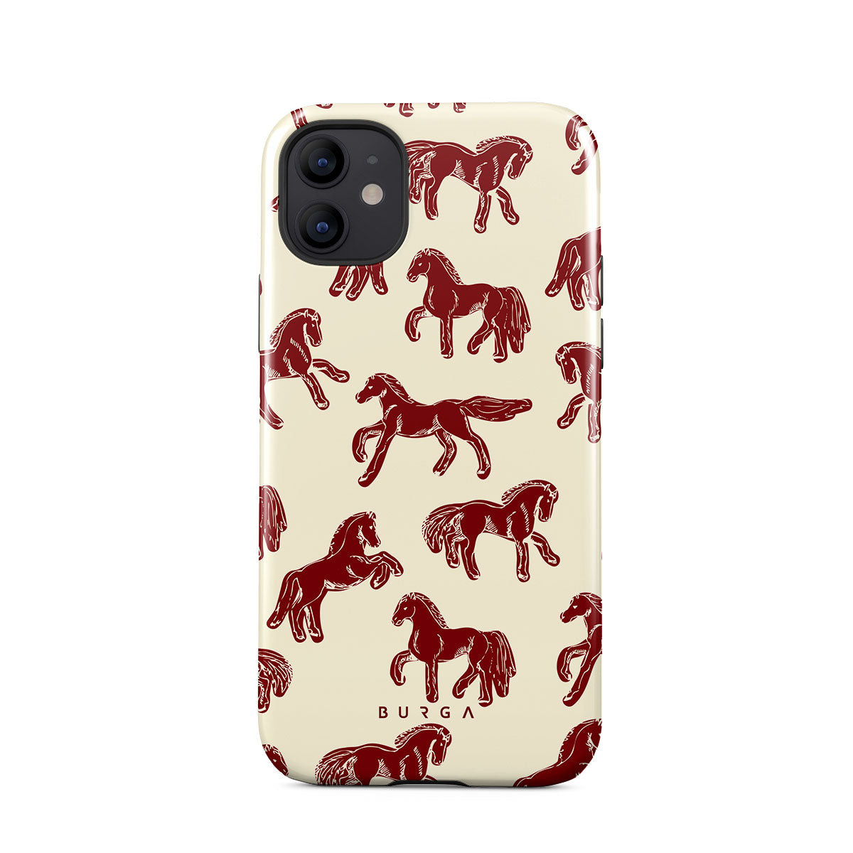 It's time to unleash your wild side with the Mustang design. Bold red horses gallop across a nude background, capturing the spirit of untamed adventure. This iPhone 12 phone case is perfect for the free-spirited souls ready to ride into the unknown.