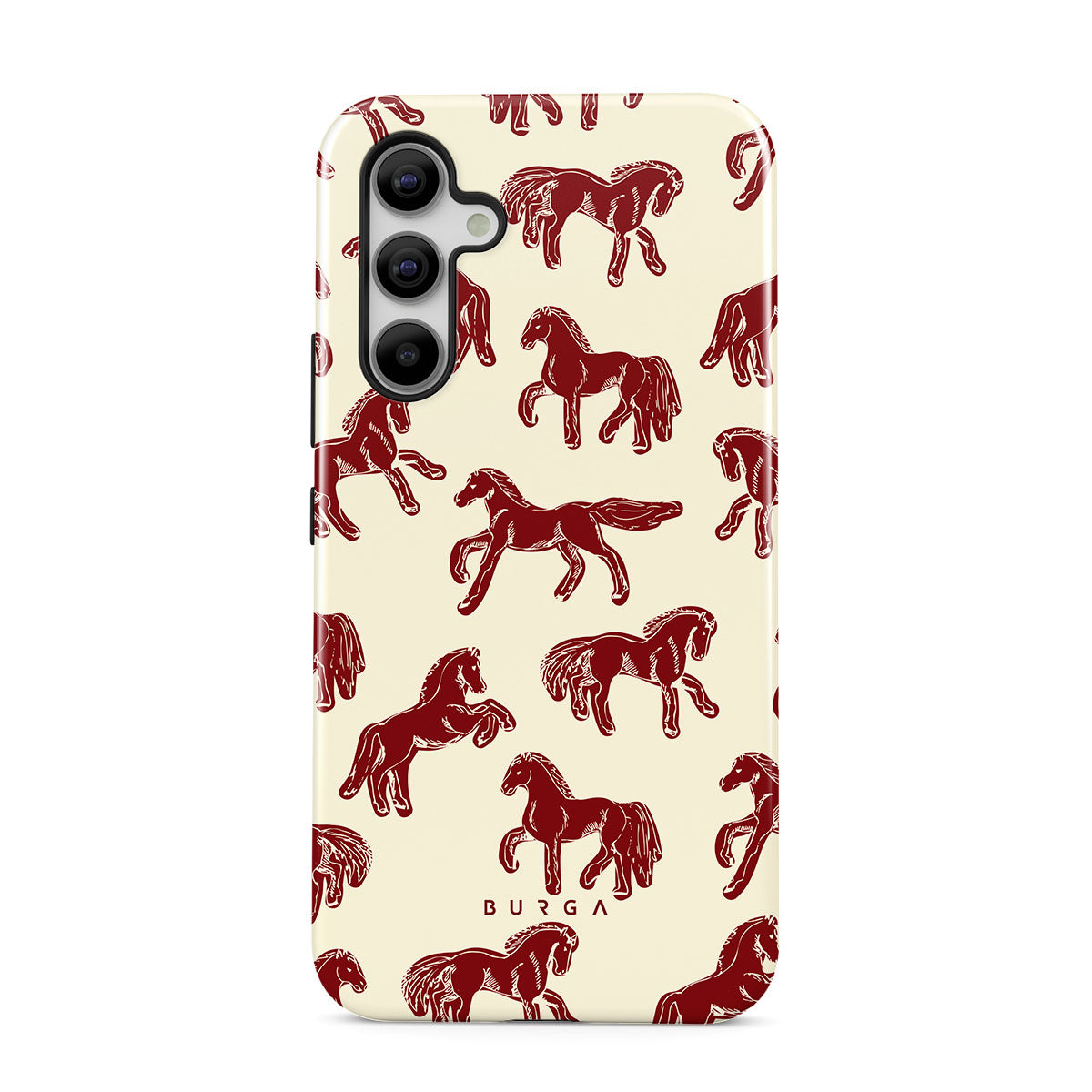 It's time to unleash your wild side with the Mustang design. Bold red horses gallop across a nude background, capturing the spirit of untamed adventure. This Samsung Galaxy A54 phone case is perfect for the free-spirited souls ready to ride into the unknown.