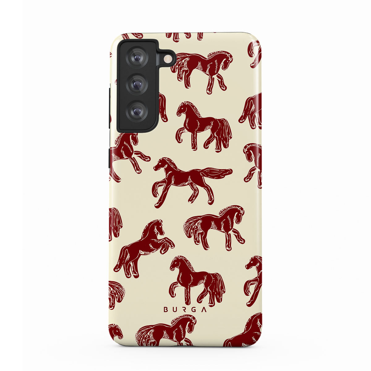 It's time to unleash your wild side with the Mustang design. Bold red horses gallop across a nude background, capturing the spirit of untamed adventure. This Samsung Galaxy S21 FE phone case is perfect for the free-spirited souls ready to ride into the unknown.