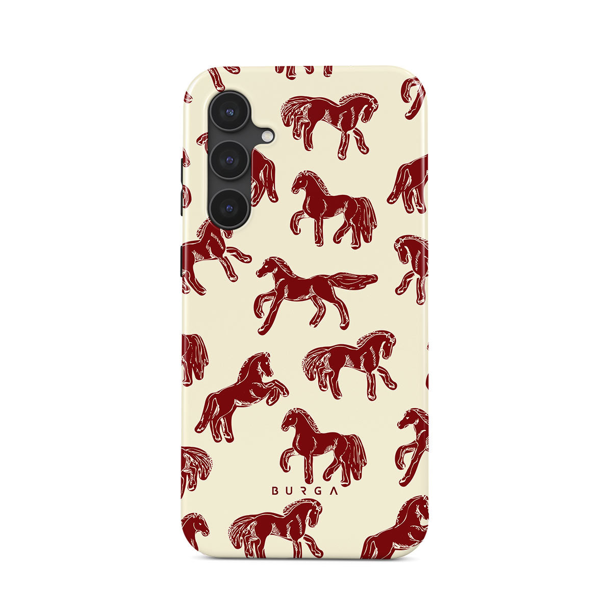 It's time to unleash your wild side with the Mustang design. Bold red horses gallop across a nude background, capturing the spirit of untamed adventure. This Samsung Galaxy S23 FE phone case is perfect for the free-spirited souls ready to ride into the unknown.