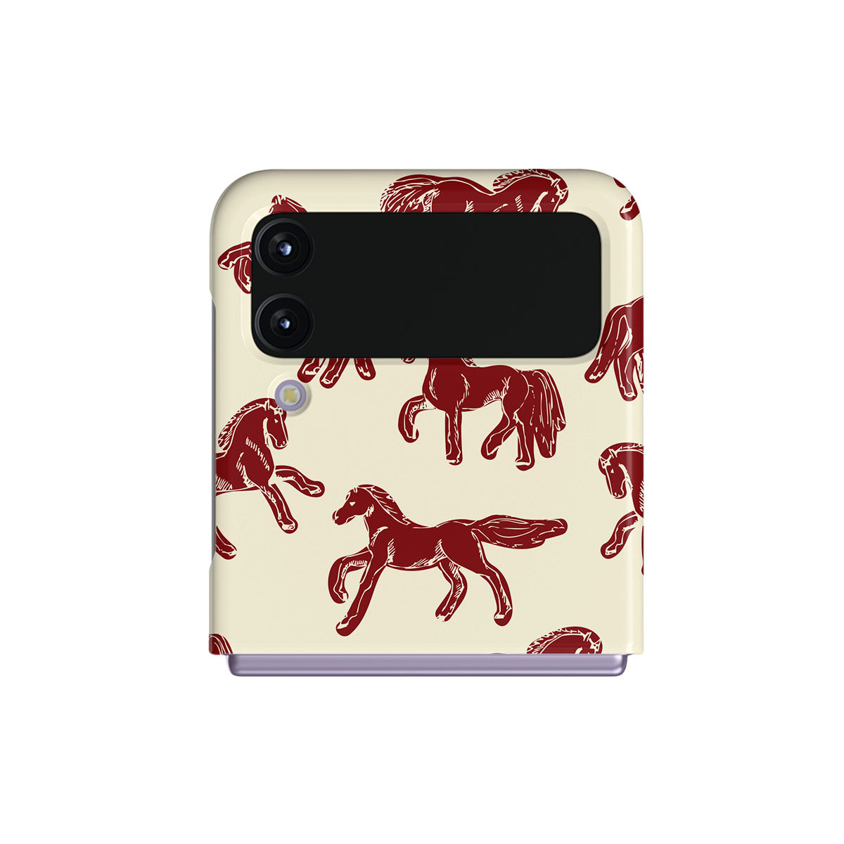 It's time to unleash your wild side with the Mustang design. Bold red horses gallop across a nude background, capturing the spirit of untamed adventure. This Samsung Galaxy Z Flip 4 phone case is perfect for the free-spirited souls ready to ride into the unknown.