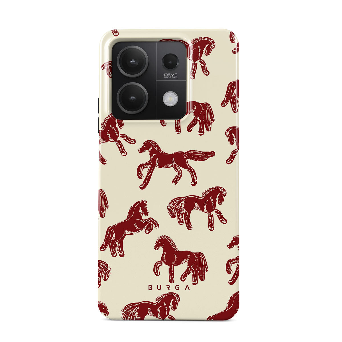 It's time to unleash your wild side with the Mustang design. Bold red horses gallop across a nude background, capturing the spirit of untamed adventure. This Xiaomi Redmi Note 13 5G phone case is perfect for the free-spirited souls ready to ride into the unknown.
