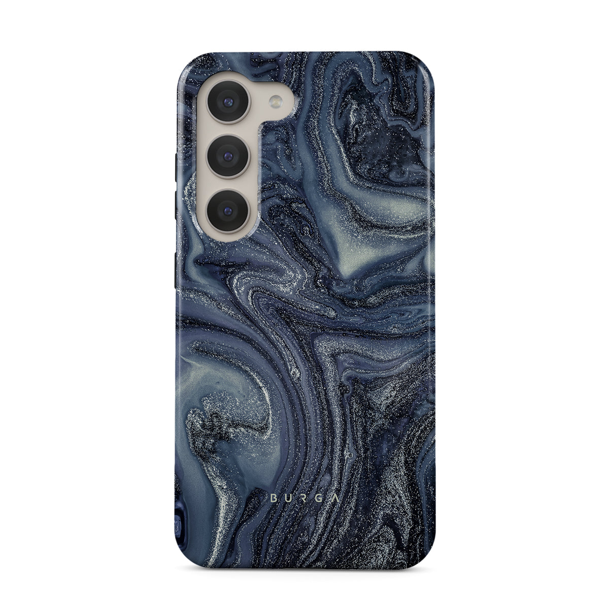 Our Navy Trench Samsung Galaxy S23 phone case is inspired by the ever-fascinating marble trend. Not only does the navy blue marble design look sophisticated and is guaranteed to catch everyone's eye, but it also adds a touch of luxury to your phone while providing shock-proof protection.