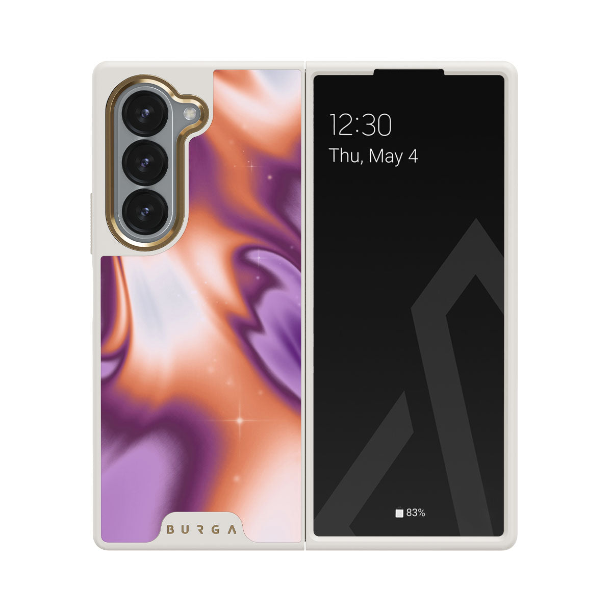Dip into the Nebula, where runway glamour collides with cosmic seduction. Purple flames play upon a bright canvas, showcasing the fiery dance of distant galaxies. Our Nebula Samsung Galaxy Z Fold 6 phone case is a piece of the universe, sparking conversations with its vibrant, otherworldly beauty.