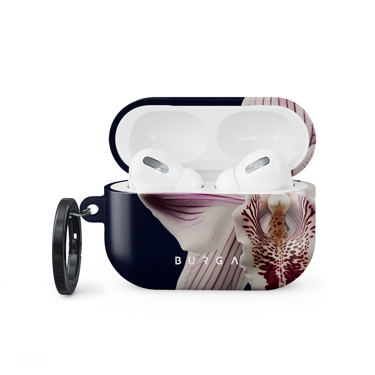 The white orchid blooms boldly upon a night sky blue, a beacon of clarity in the darkness. Our Nectar Apple Airpods Pro 2 case cover design speaks to the soul's desire to find light within, to illuminate the hidden paths of self-discovery that only reveal themselves under the cloak of introspection.