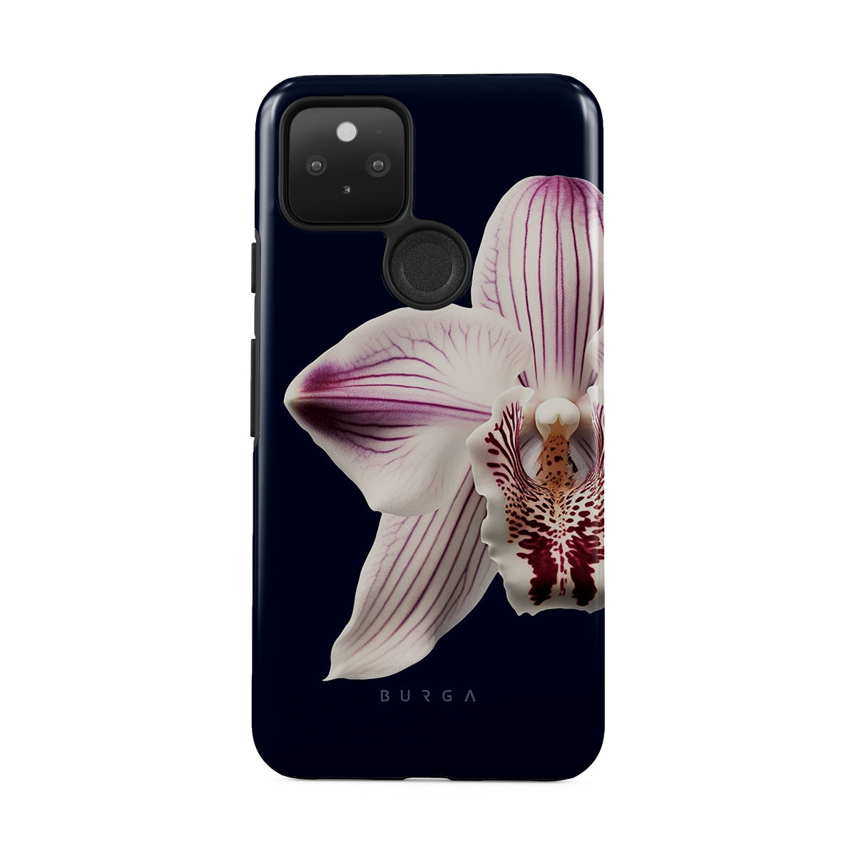 The white orchid blooms boldly upon a night sky blue, a beacon of clarity in the darkness. Our Nectar Google Pixel 5 phone case design speaks to the soul's desire to find light within, to illuminate the hidden paths of self-discovery that only reveal themselves under the cloak of introspection.