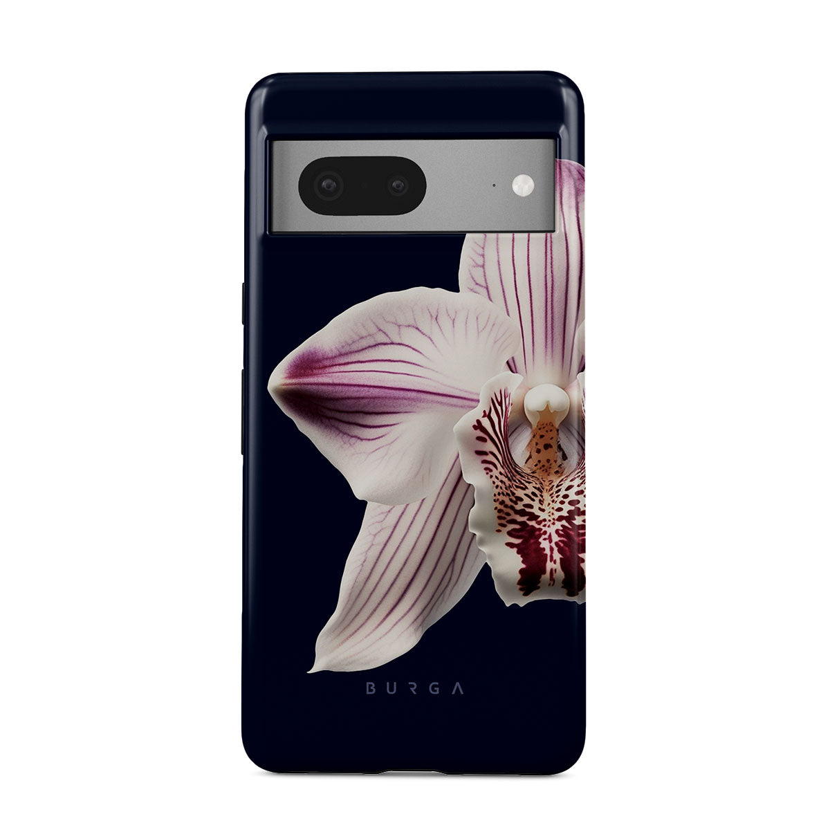 The white orchid blooms boldly upon a night sky blue, a beacon of clarity in the darkness. Our Nectar Google Pixel 7a phone case design speaks to the soul's desire to find light within, to illuminate the hidden paths of self-discovery that only reveal themselves under the cloak of introspection.