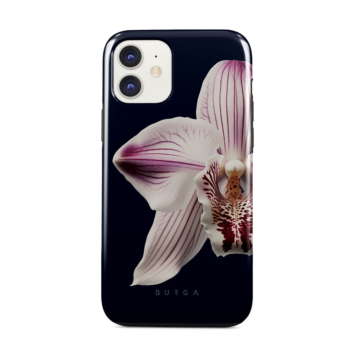 The white orchid blooms boldly upon a night sky blue, a beacon of clarity in the darkness. Our Nectar iPhone 11 phone case design speaks to the soul's desire to find light within, to illuminate the hidden paths of self-discovery that only reveal themselves under the cloak of introspection.