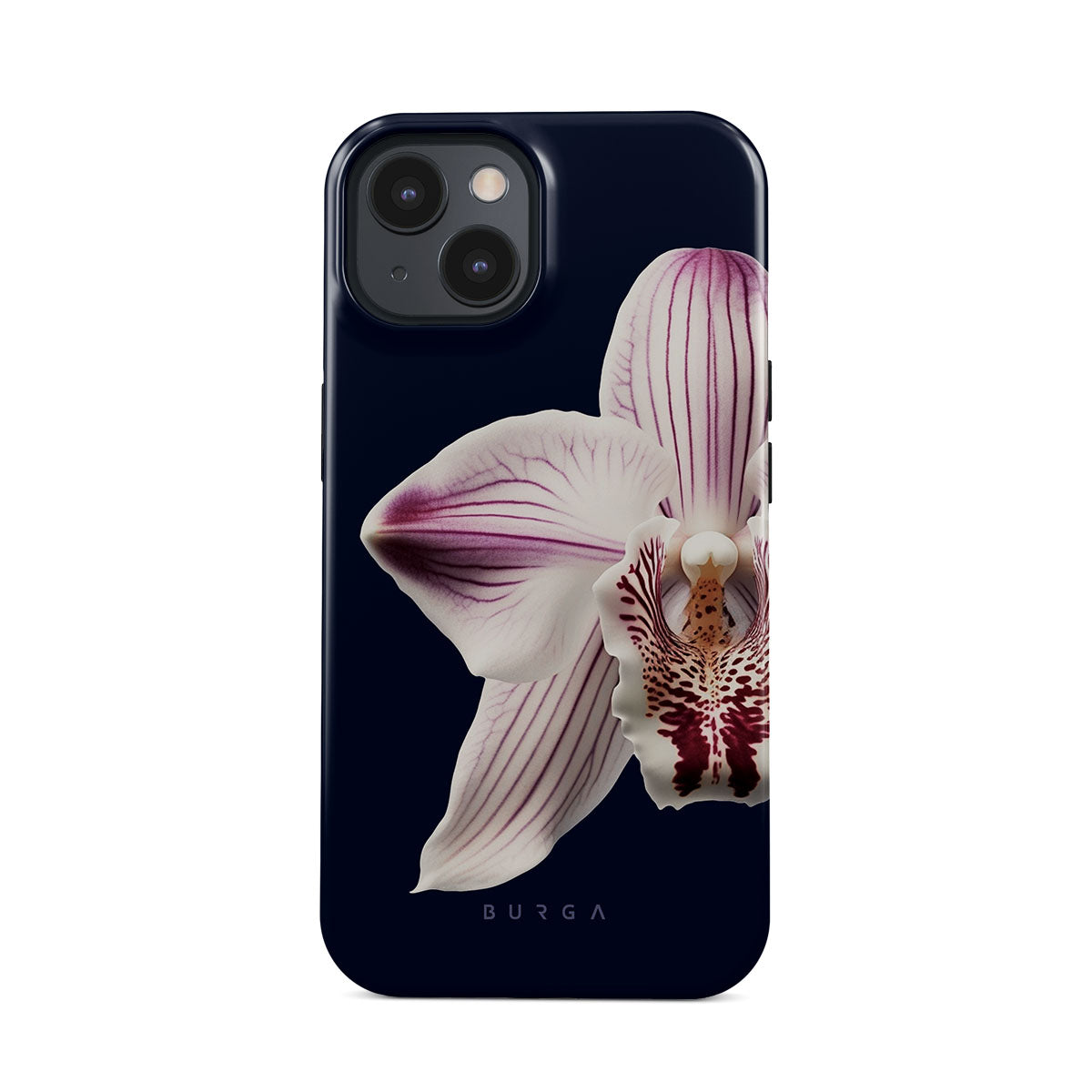 The white orchid blooms boldly upon a night sky blue, a beacon of clarity in the darkness. Our Nectar iPhone 14 phone case design speaks to the soul's desire to find light within, to illuminate the hidden paths of self-discovery that only reveal themselves under the cloak of introspection.