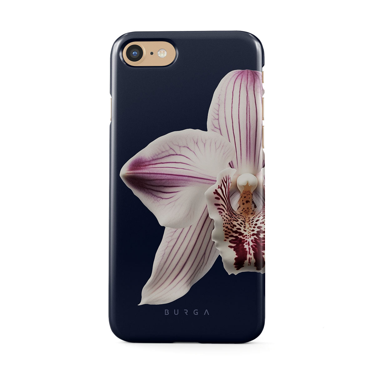 The white orchid blooms boldly upon a night sky blue, a beacon of clarity in the darkness. Our Nectar iPhone 7 / iPhone 8 phone case design speaks to the soul's desire to find light within, to illuminate the hidden paths of self-discovery that only reveal themselves under the cloak of introspection.