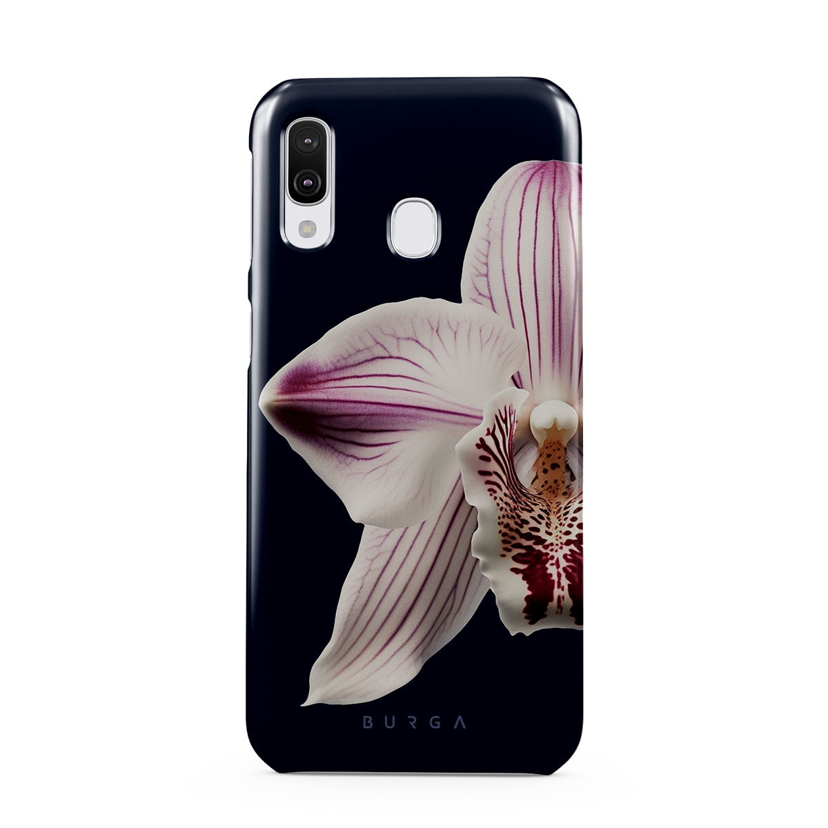 The white orchid blooms boldly upon a night sky blue, a beacon of clarity in the darkness. Our Nectar Samsung Galaxy A40 phone case design speaks to the soul's desire to find light within, to illuminate the hidden paths of self-discovery that only reveal themselves under the cloak of introspection.