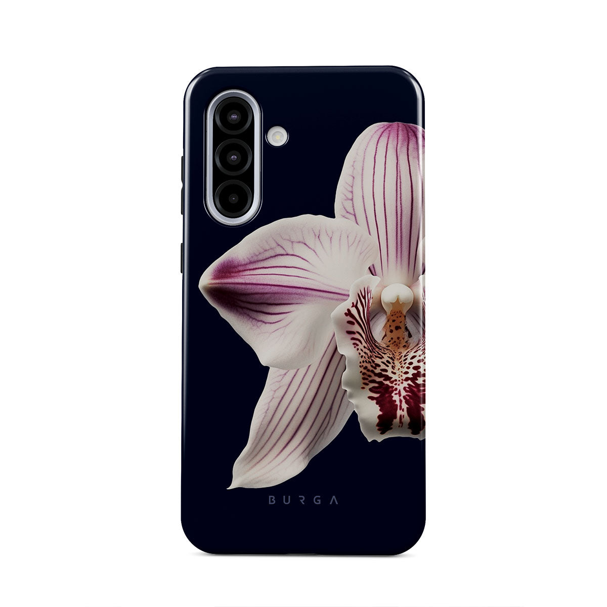 The white orchid blooms boldly upon a night sky blue, a beacon of clarity in the darkness. Our Nectar Samsung Galaxy A56 5G phone case design speaks to the soul's desire to find light within, to illuminate the hidden paths of self-discovery that only reveal themselves under the cloak of introspection.