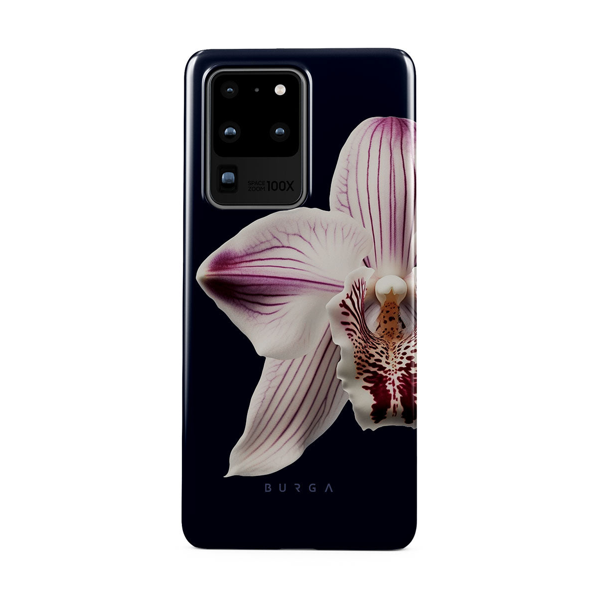 The white orchid blooms boldly upon a night sky blue, a beacon of clarity in the darkness. Our Nectar Samsung Galaxy S20 Ultra 4G / 5G phone case design speaks to the soul's desire to find light within, to illuminate the hidden paths of self-discovery that only reveal themselves under the cloak of introspection.