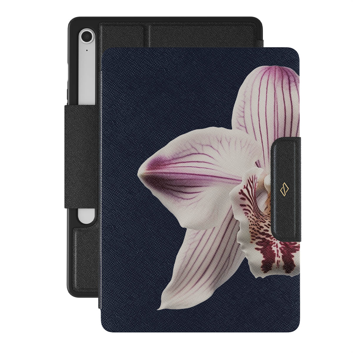 The white orchid blooms boldly upon a night sky blue, a beacon of clarity in the darkness. Our Nectar Samsung Galaxy Tab S10 FE folio case design speaks to the soul's desire to find light within, to illuminate the hidden paths of self-discovery that only reveal themselves under the cloak of introspection.