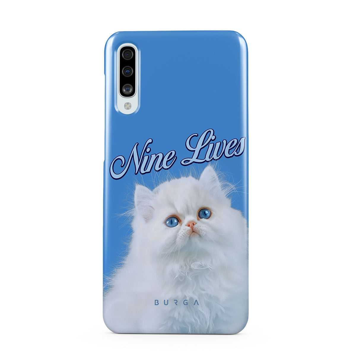 Channel your inner diva with our Nine Lives Samsung Galaxy A50 phone case. It's luxe, plush, and purr-fectly fabulous, with just enough fluff to show you mean business.