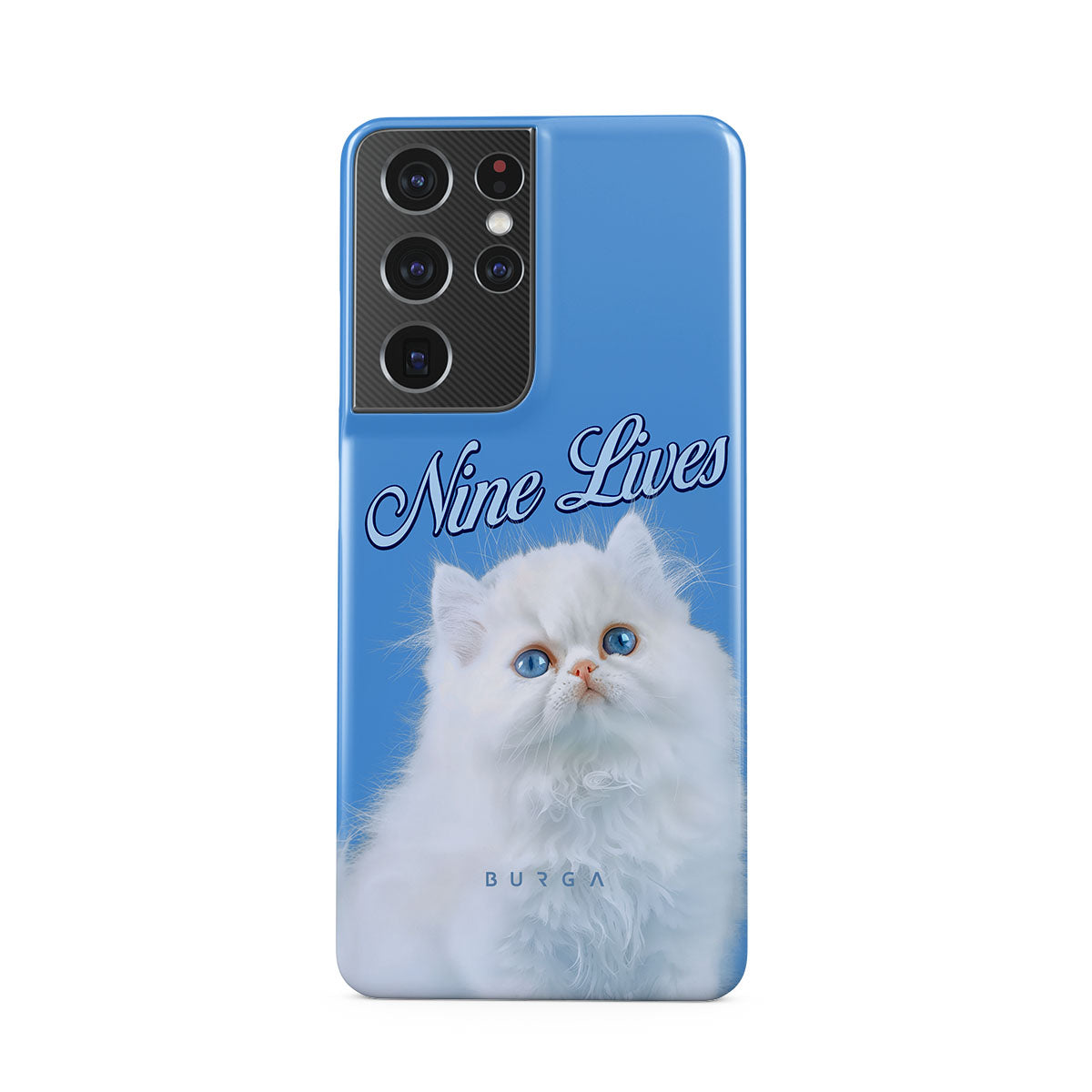 Channel your inner diva with our Nine Lives Samsung Galaxy S21 Ultra phone case. It's luxe, plush, and purr-fectly fabulous, with just enough fluff to show you mean business.