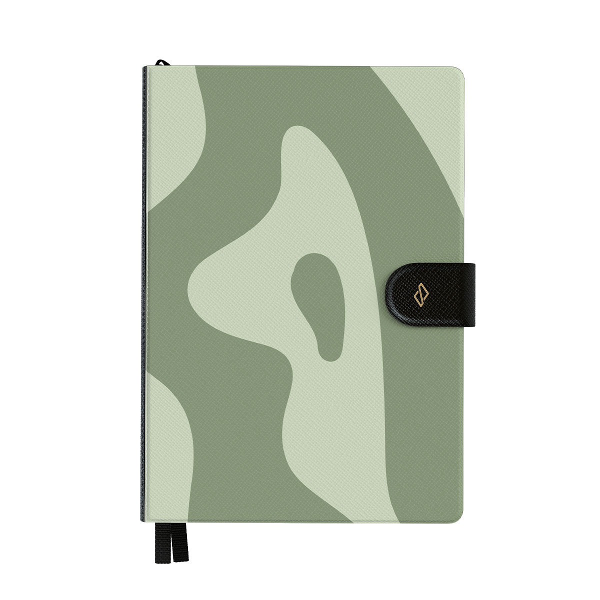 Wrapped in sleek vegan saffiano leather and secured with a sleek magnetic clasp, it's durable enough to handle coffee spills and life's little oops moments.