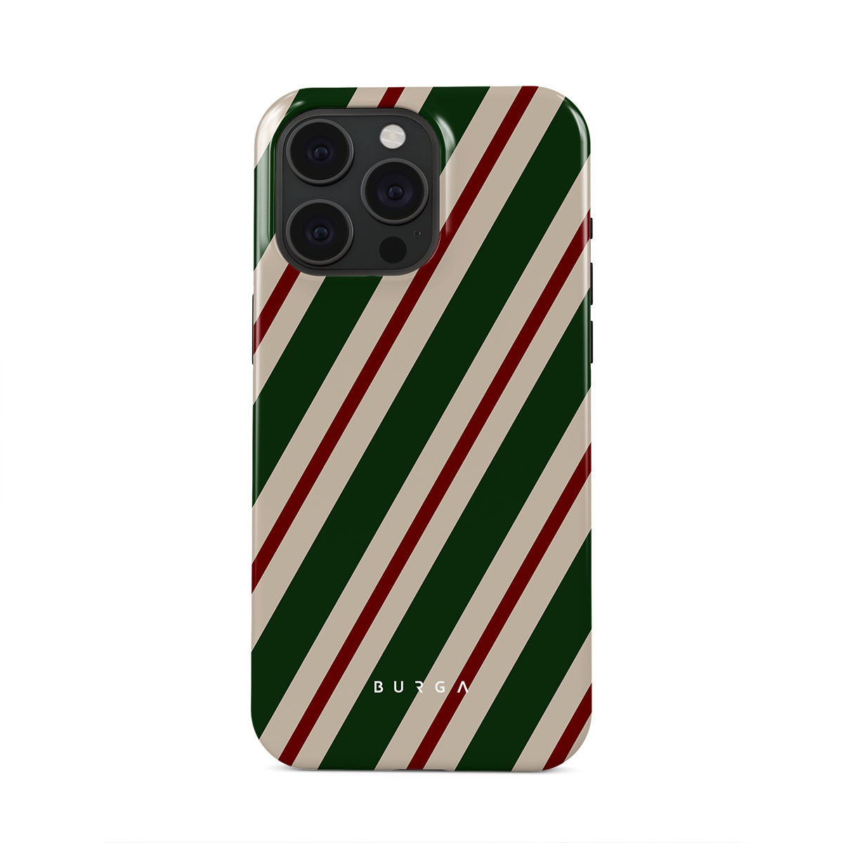 A joyful design that screams holiday spirit. Our North Pole iPhone 15 Pro Case phone case transports you straight to Santa's workshop. Bold green, red, and white stripes echo the joy and laughter of elves preparing for the festive season.