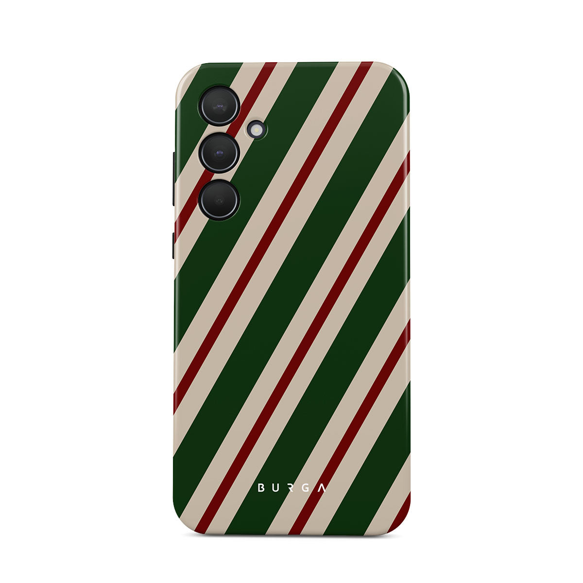 A joyful design that screams holiday spirit. Our North Pole Samsung Galaxy A35 Case phone case transports you straight to Santa's workshop. Bold green, red, and white stripes echo the joy and laughter of elves preparing for the festive season.