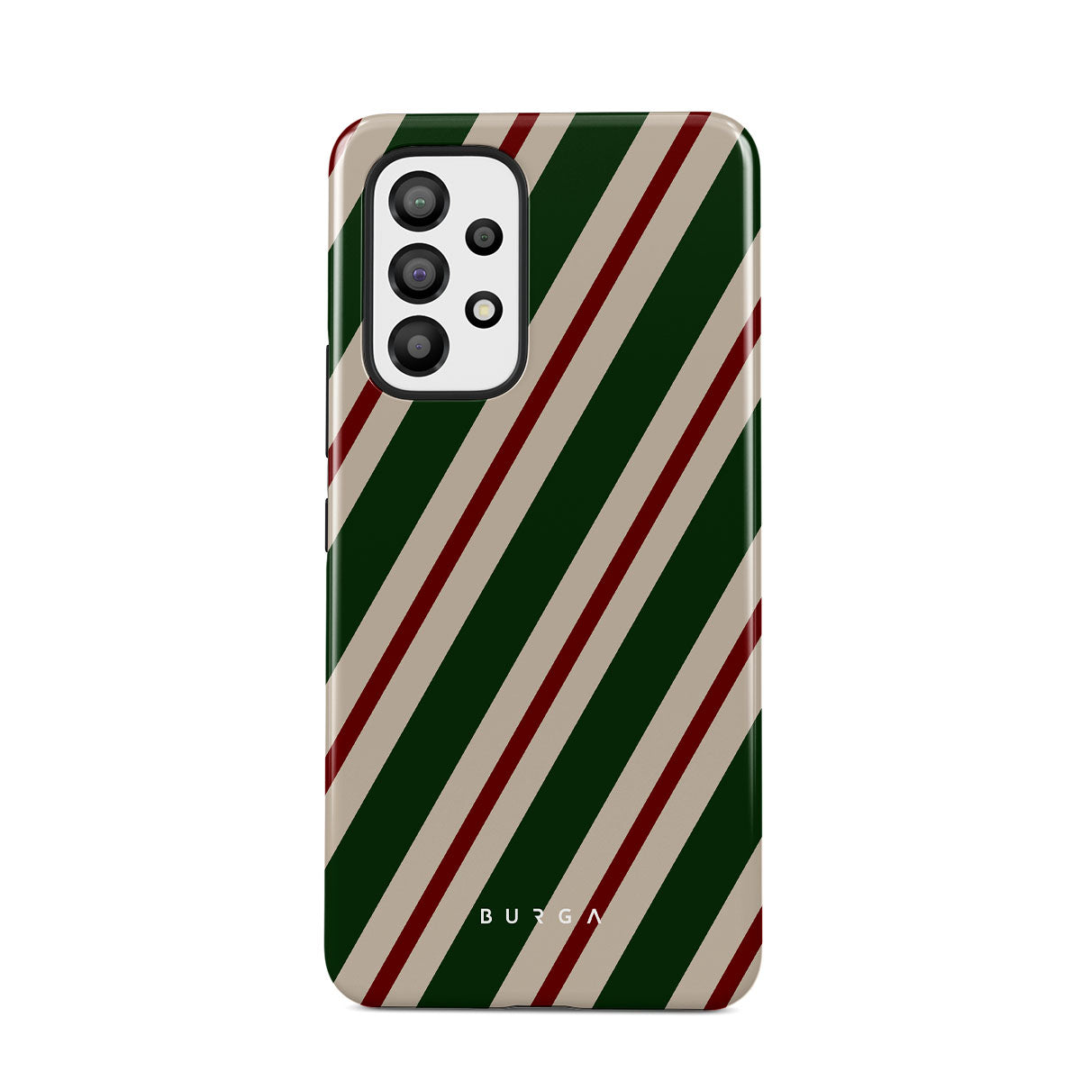 A joyful design that screams holiday spirit. Our North Pole Samsung Galaxy A53 Case phone case transports you straight to Santa's workshop. Bold green, red, and white stripes echo the joy and laughter of elves preparing for the festive season.