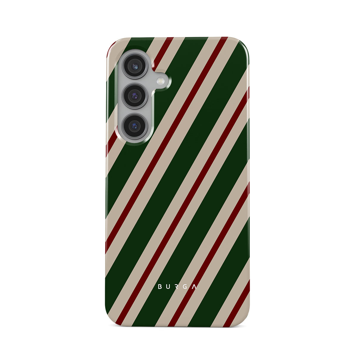 A joyful design that screams holiday spirit. Our North Pole Samsung Galaxy S24 Plus Case phone case transports you straight to Santa's workshop. Bold green, red, and white stripes echo the joy and laughter of elves preparing for the festive season.