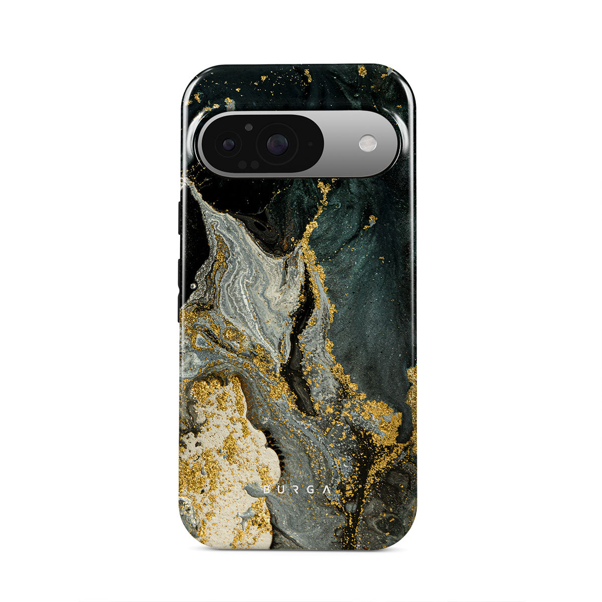 Our cute marble Northern Lights Google Pixel 9 phone case showcases a combination of moss green shades in a marble pattern enriched with golden specks. The asymmetrical design reminding of a star map will add a touch of luxury and mystery to every accessory lover's collection.
