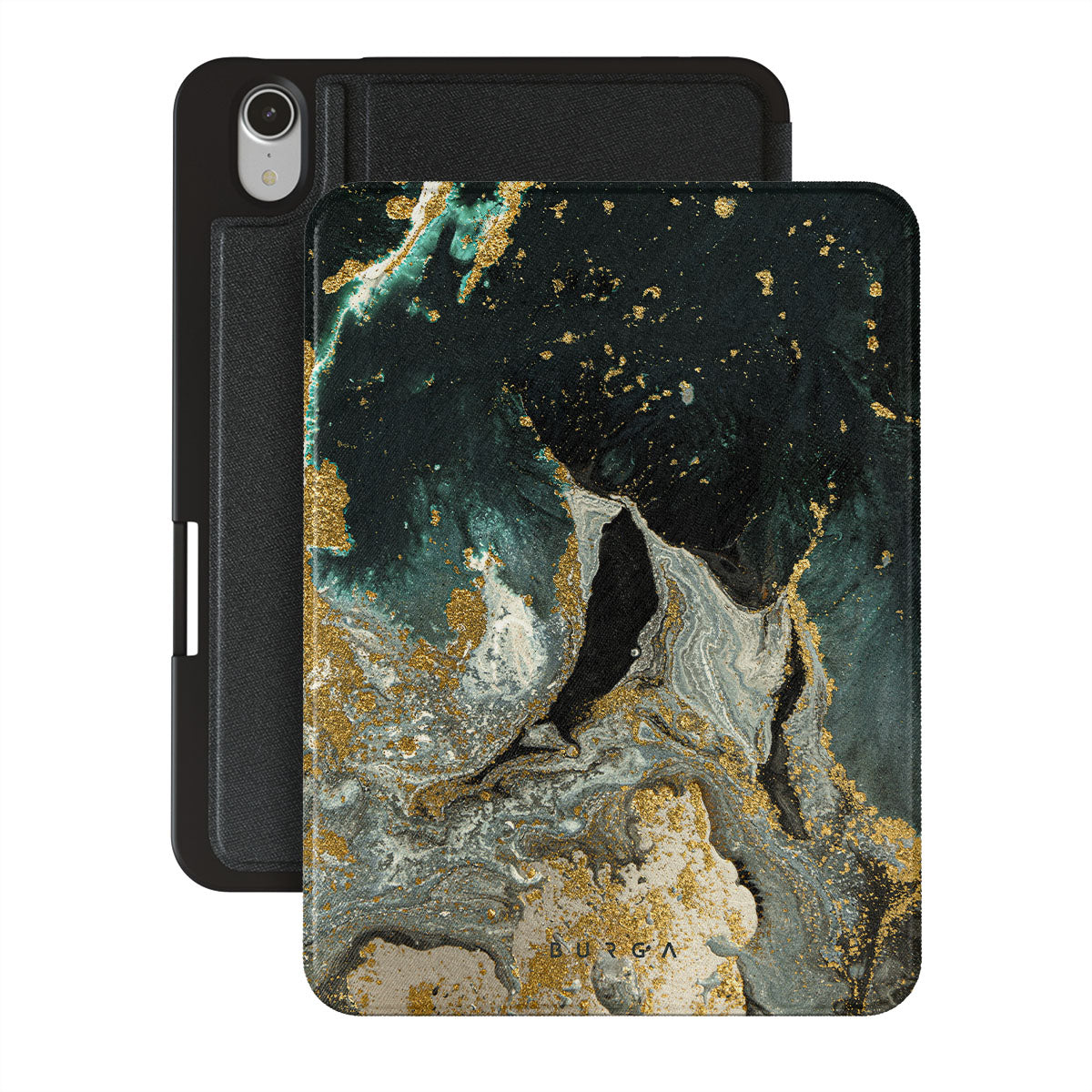 Our cute marble Northern Lights iPad Mini 8.3 (A17 Pro/6th Gen) 2021 folio case showcases a combination of moss green shades in a marble pattern enriched with golden specks. The asymmetrical design reminding of a star map will add a touch of luxury and mystery to every accessory lover's collection.