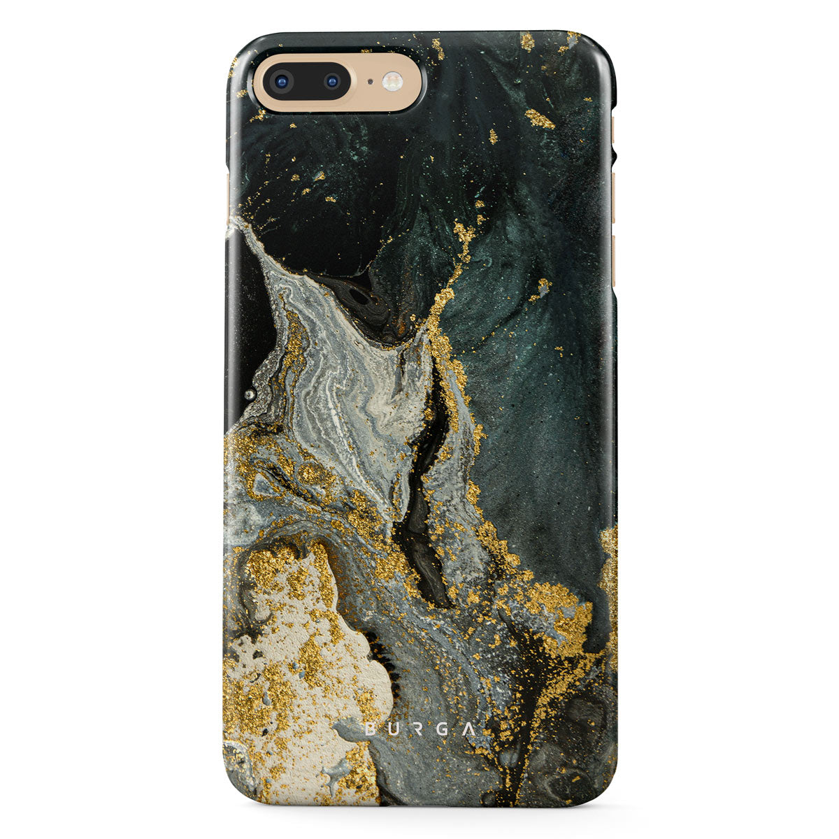 Our cute marble Northern Lights iPhone 7 Plus 8 Plus phone case showcases a combination of moss green shades in a marble pattern enriched with golden specks. The asymmetrical design reminding of a star map will add a touch of luxury and mystery to every accessory lover's collection.