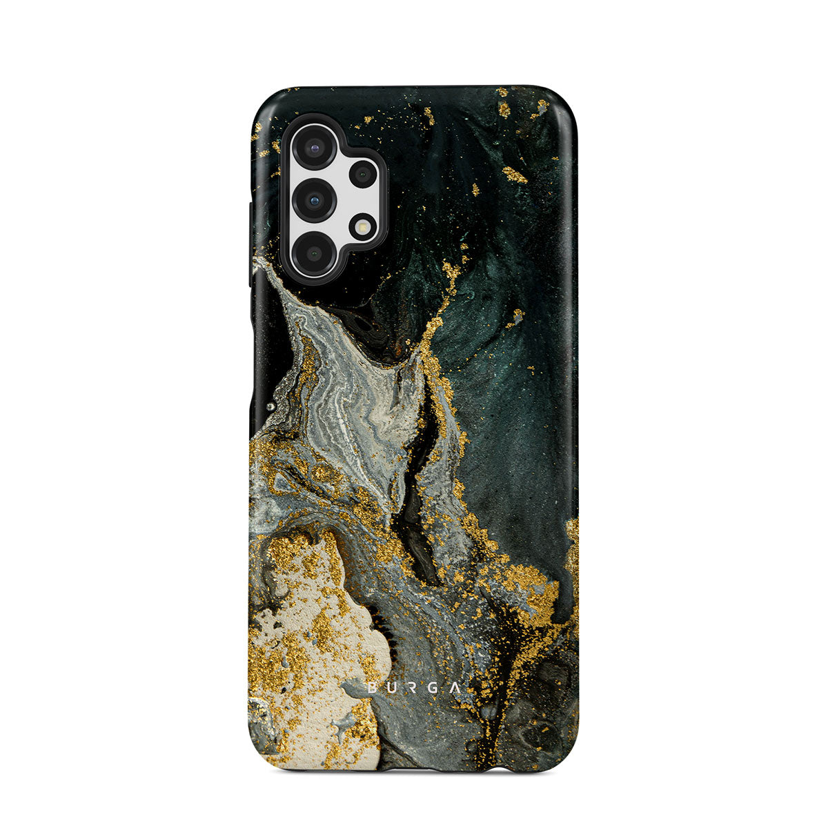 Our cute marble Northern Lights Samsung Galaxy A13 4G phone case showcases a combination of moss green shades in a marble pattern enriched with golden specks. The asymmetrical design reminding of a star map will add a touch of luxury and mystery to every accessory lover's collection.