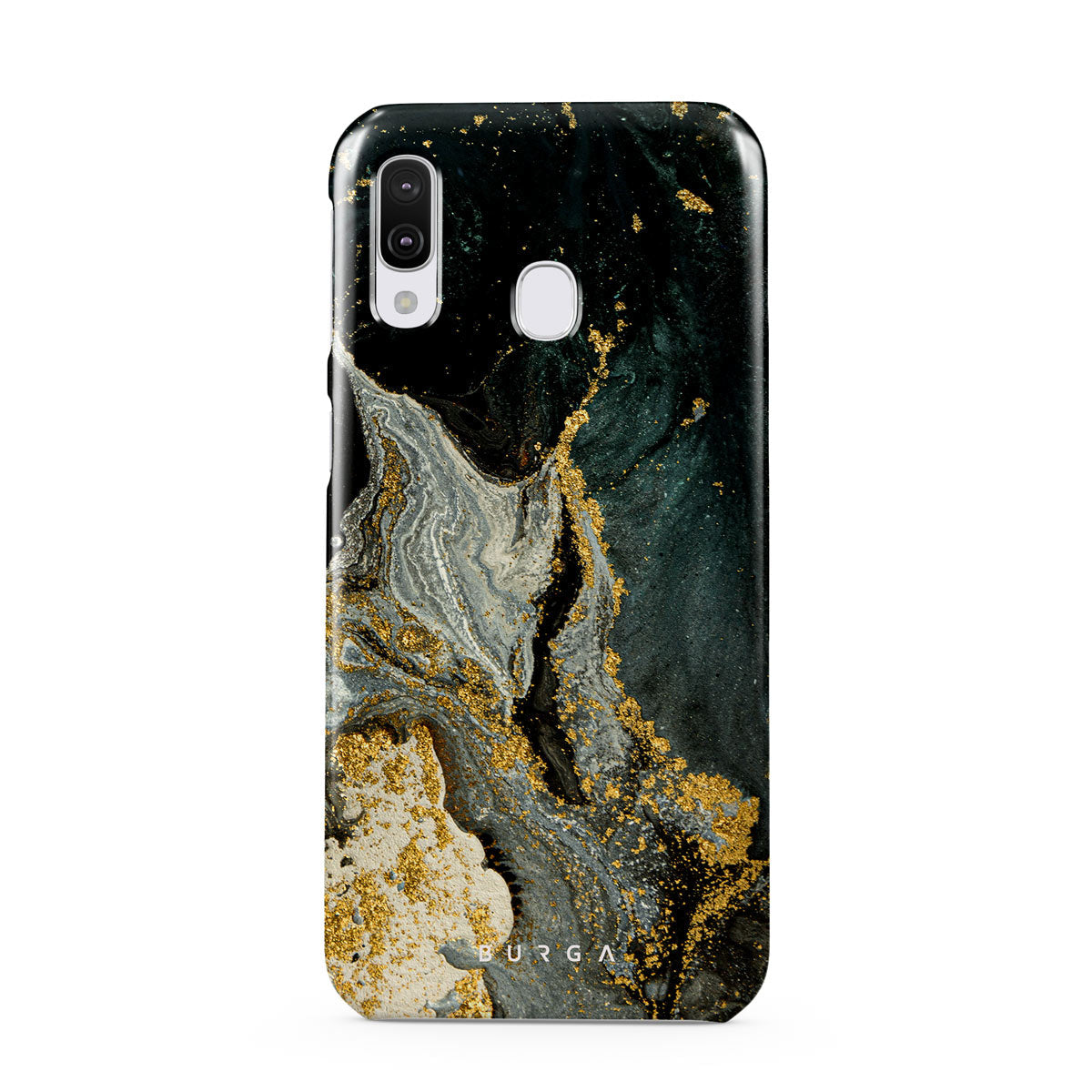 Our cute marble Northern Lights Samsung Galaxy A40 phone case showcases a combination of moss green shades in a marble pattern enriched with golden specks. The asymmetrical design reminding of a star map will add a touch of luxury and mystery to every accessory lover's collection.
