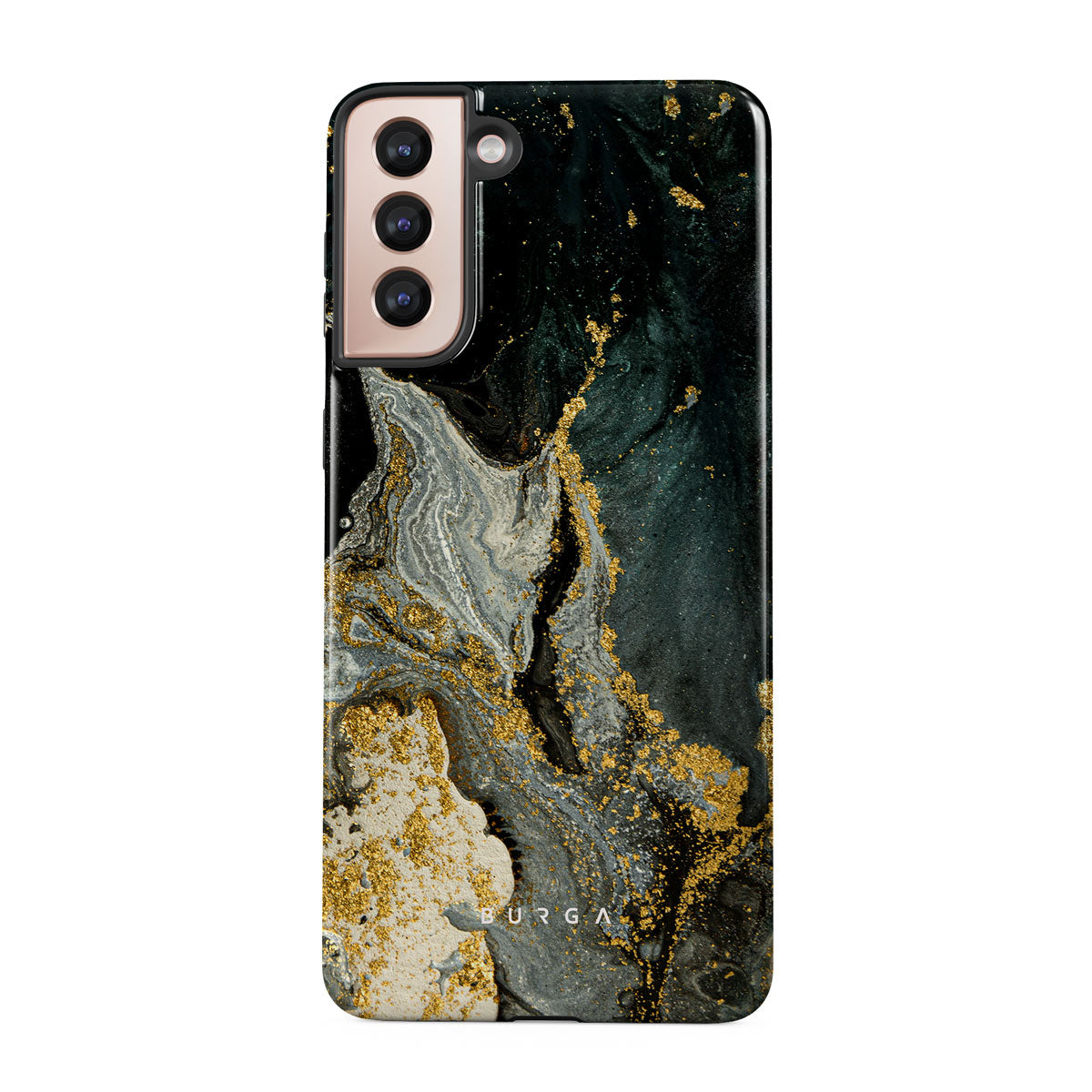Our cute marble Northern Lights Samsung Galaxy S21 Plus phone case showcases a combination of moss green shades in a marble pattern enriched with golden specks. The asymmetrical design reminding of a star map will add a touch of luxury and mystery to every accessory lover's collection.