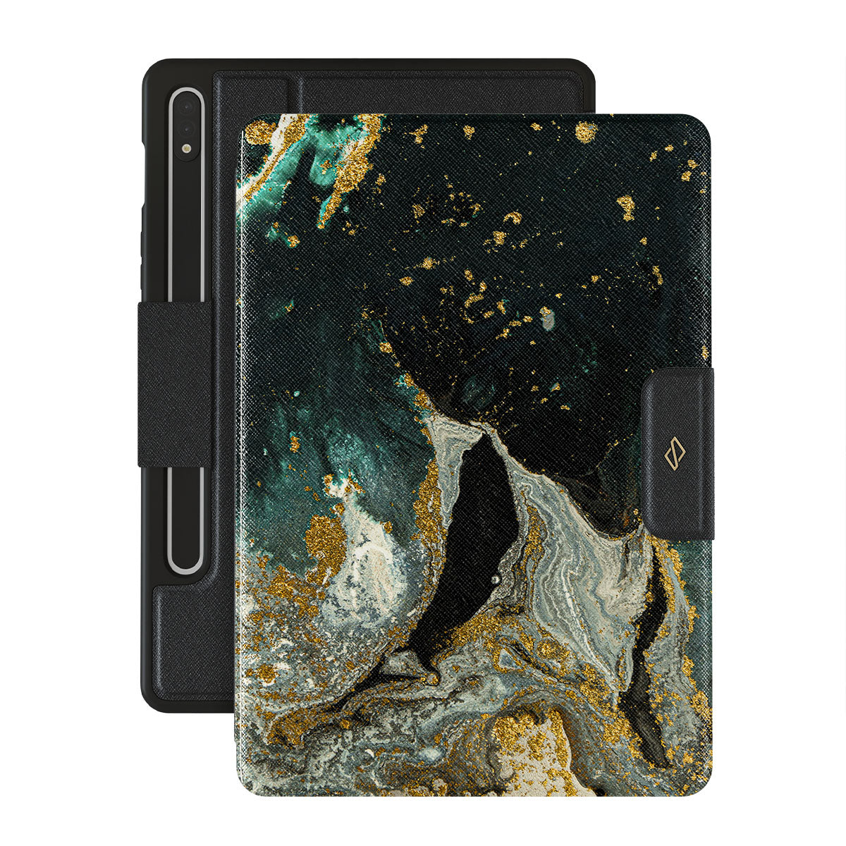 Our cute marble Northern Lights Samsung Galaxy Tab S10+ folio case showcases a combination of moss green shades in a marble pattern enriched with golden specks. The asymmetrical design reminding of a star map will add a touch of luxury and mystery to every accessory lover's collection.